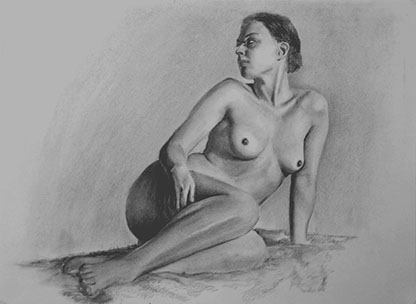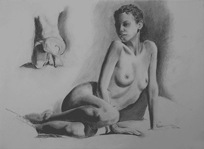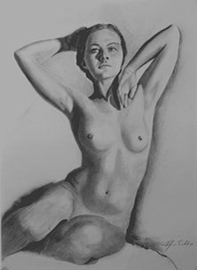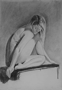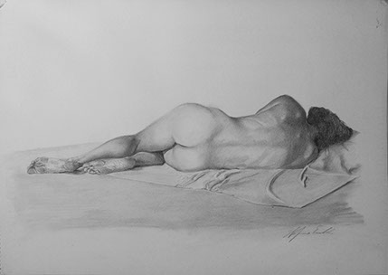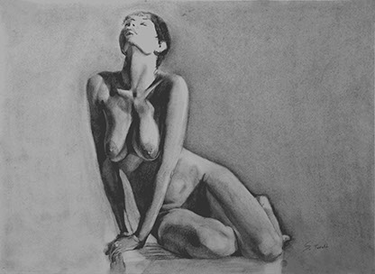 Nudo di donna, carboncino su carta, 42c x 29,7cm