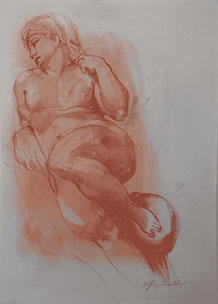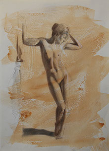 Nudo di donna, carboncino su carta colorata, 33,5 x 24cm