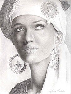 Ritratto volto di donna, matita su carta, 28 x 38cm