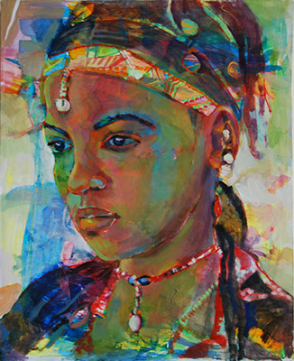 Ritratto di ragazza, tecnica mista su tela, 50 x 40cm